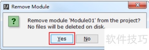 8、 弹出移除模块对话框后,点击是确认操作,具体操作所示。