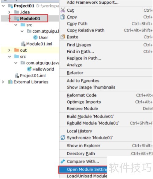 6、 删除Module时,可先右键选中已创建的Module,随后选择打开模块设置,具体操作所示。