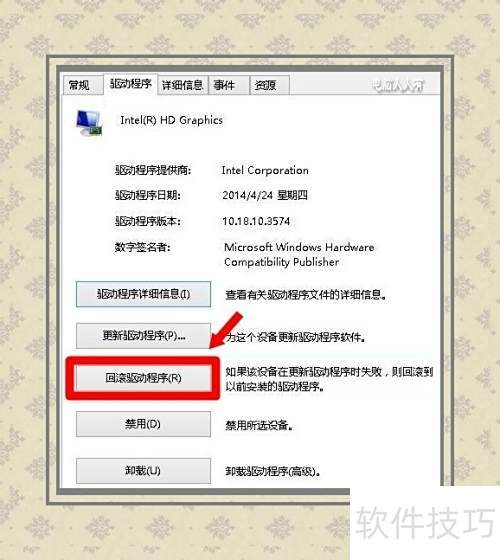 7、 依次点击驱动程序,选择回滚驱动,按提示操作即可。若回滚失败,可尝试重新更新显卡驱动,使用Windows 7系统并保持网络连接,让系统自动搜索最新驱动完成安装。