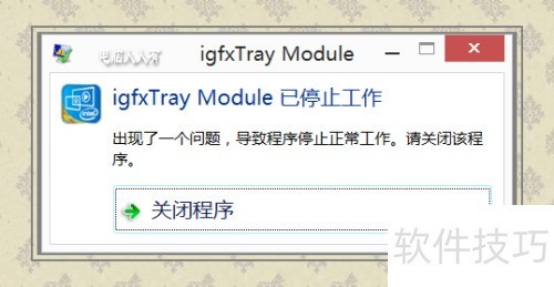 4、 电脑开机提示igfxTray Module已停止工作多因驱动异常,建议回退或重新安装显卡驱动以解决问题。