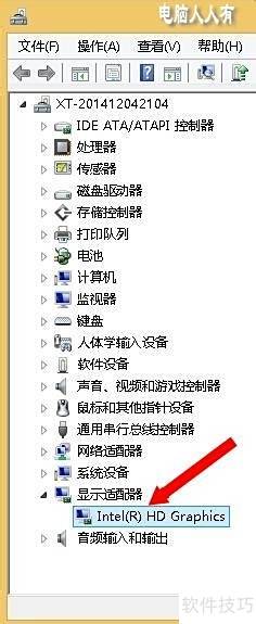 6、 打开控制面板,进入系统硬件的设备管理器,找到显示适配器,右键点击英特尔显卡并选择属性。