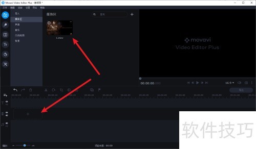 1、 打开Movavi Video软件,将所需素材直接拖至下方时间轴即可完成导入。