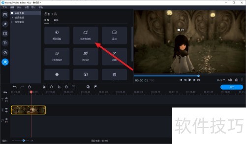 2、 选中时间轴素材,点击更多工具按钮。