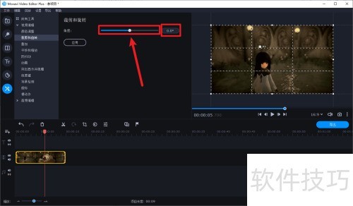 4、 通过拖动进度条或调整右侧数值,可对视频进行旋转操作,所示。