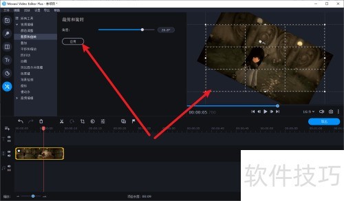 5、 调整旋转角度后,点击应用按钮保存视频。