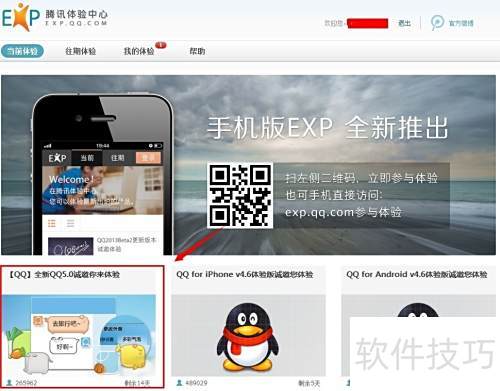 1、 进入腾讯体验中心,选择想要体验的QQ版本,例如QQ5.0,具体操作所示。