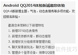 3、 点击安卓2014体验版,查看新版功能,登录QQ即可参与。