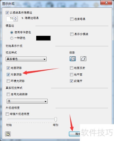 4、 勾选对象阴影选项