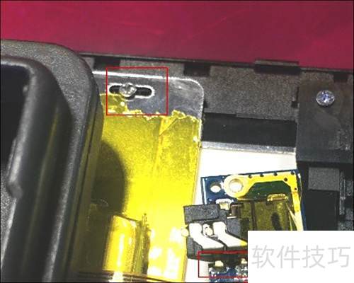 26、 主板与后盖连接处部分区域设有触点,维修时需格外谨慎。操作中应避免触碰导致触点脱落或损坏,涂抹导热硅脂时注意不要沾染到触点,防止接触不良。安装石墨散热片时需保持足够间距,避免与触点接触引发短路。