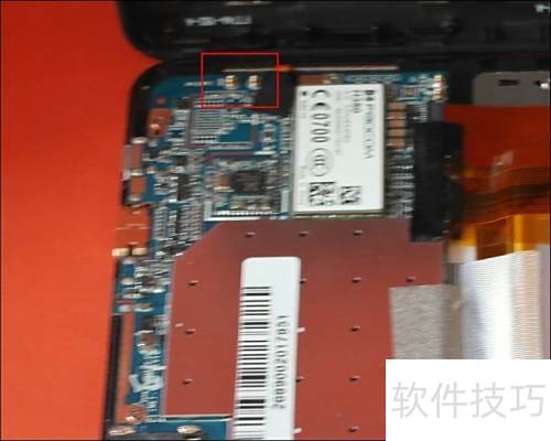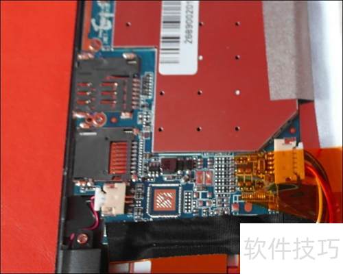 15、 拆开平板后盖可见内部结构,其中标示出的区域为发热量较高的CPU所在位置。