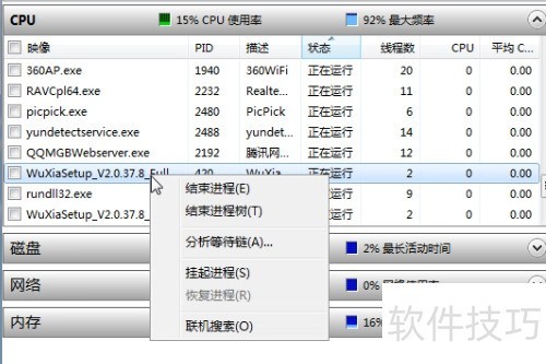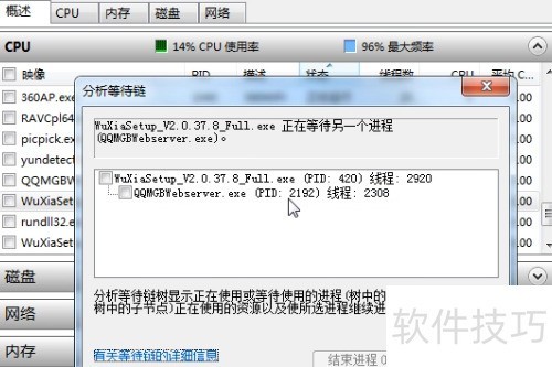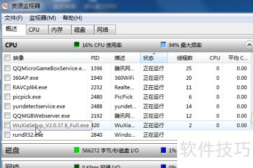 6、 在资源监视器中拖动右侧滚动条,查找名称以Wuxiasteup开头的文件。