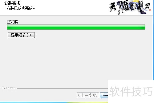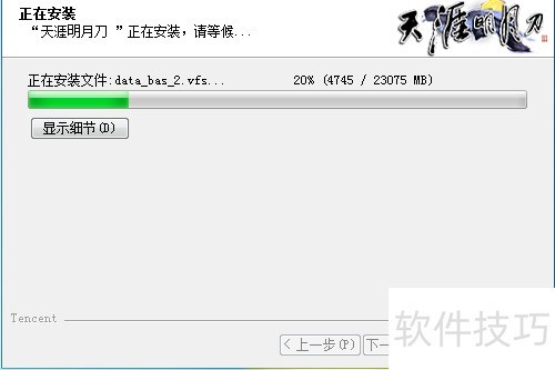 11、 打开天涯明月刀安装程序,点击下一步,选择我接受协议,设定游戏安装路径,确认目标磁盘位置,点击安装按钮,系统随即开始自动安装游戏文件,等待进度完成即可。