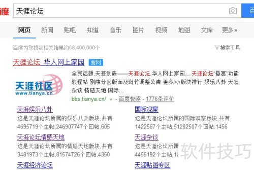 1、 百度搜索天涯论坛,点击进入即可。