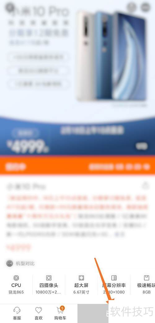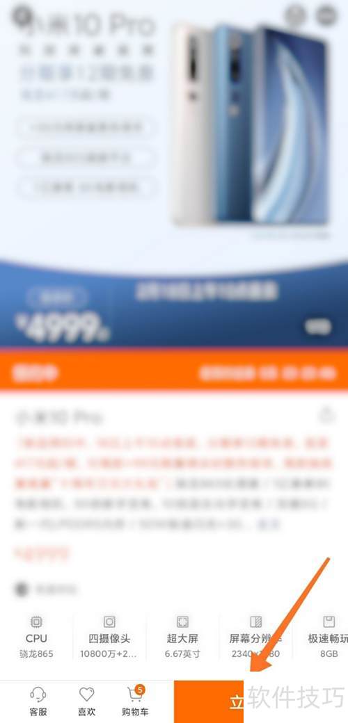 4、 打开小米10 Pro页面,点击右下角箭头指向的立即预约按钮。