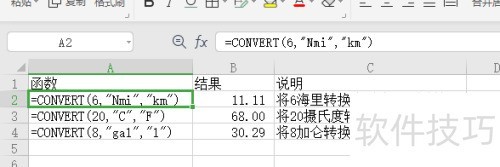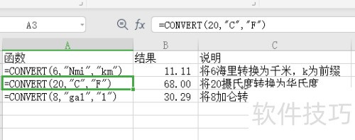 9、 若函数公式为=CONVERT(20,段秤C,F),表示将20从段秤C单位转换为华氏单位。