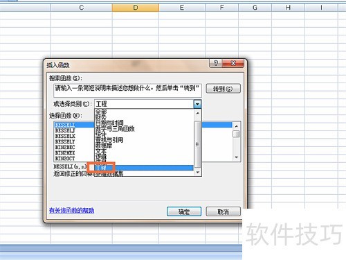 3、 在弹窗中选择工程函数,见图示