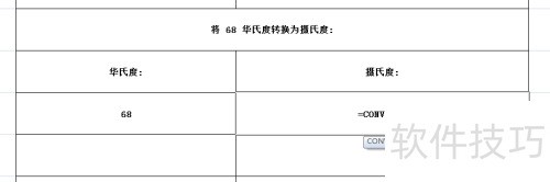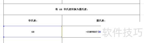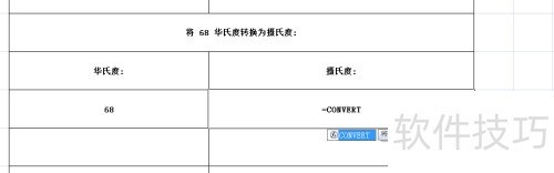7、 以该列数据为例,将68华氏度换算成摄氏度,需使用CONVERT函数进行计算。
