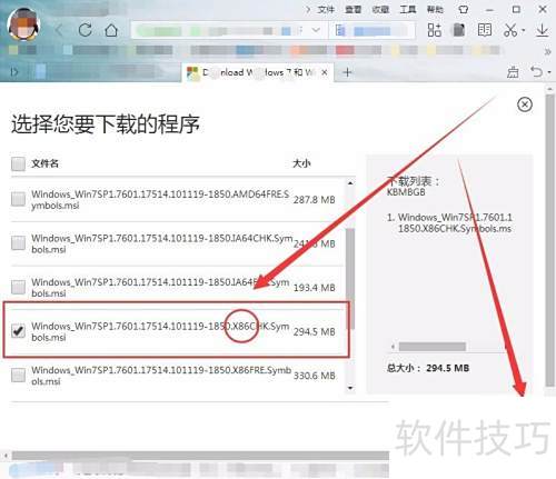 8、 在下载程序界面中,根据系统类型选择对应的Service Pack 1安装包,32位系统选X86,64位系统选64位版本,此处我选择了适用于32位操作系统的安装包进行下载。