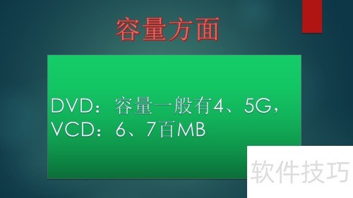 3、 DVD容量通常为4到5GB,而VCD则仅有600至700MB左右。