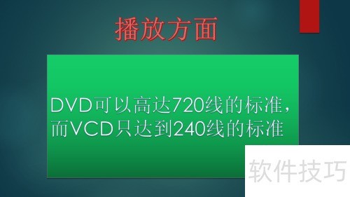 5、 DVD播放清晰度可达720线,而VCD仅能达到240线,画质差距明显。