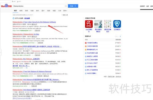 2、 搜索 Malwarebytes 免费版并下载安装即可使用。