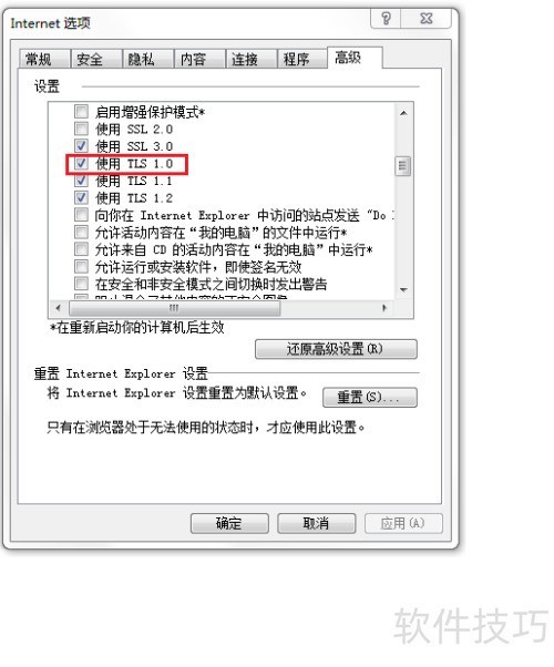 在IE浏览器中启用TLS 1.0,需进入工具菜单的Internet选项,选择高级标签,向下滚动找到安全设置,勾选使用TLS 1.0,最后点击确定保存设置即可。
