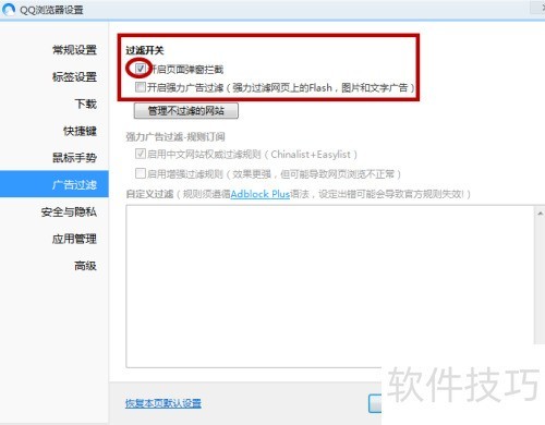 5、 点击下方工具中的广告过滤选项
