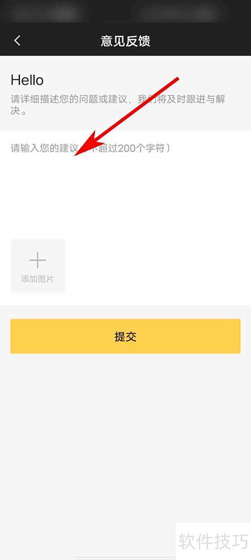 4、 跳转页面后,在箭头指示处填写反馈内容。
