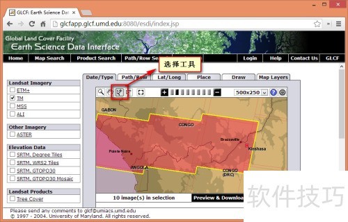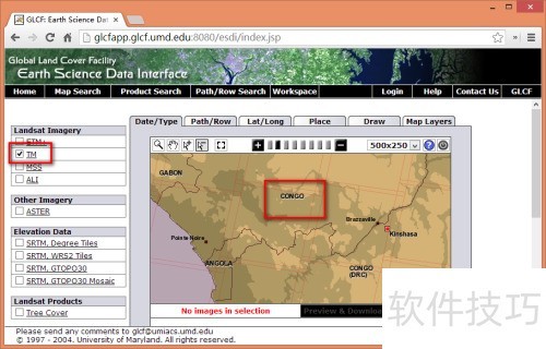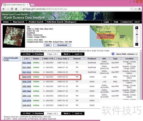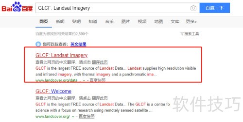 1、 进入GLCF网站,查找Landsat影像数据,点击首个搜索结果即可获取所需图像信息。