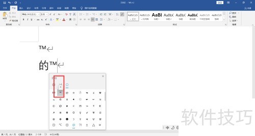 6、 通过输入法符号面板,查找并点击商标TM符号即可插入。