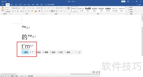 9、 输入数字后加符号,Word中自动显示TM标志。