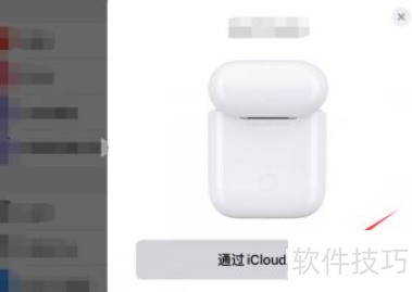 取出耳机,开启蓝牙,选择通过iCloud连接,确认完成。设备显示已连接,蓝牙耳机指示灯停止闪烁,表示配对成功。