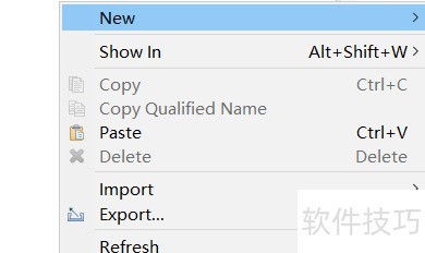 2、 在项目资源管理器中右键单击,选择新建选项,操作所示。