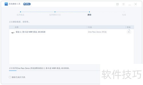 3、 选择目标磁盘,点击下一步开始擦除数据。