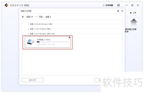 3、 第二步:挑选目标磁盘,支持硬盘或固态硬盘。