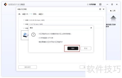 2、 若系统分区与启动分区位于不同磁盘,系统克隆功能将无法使用。