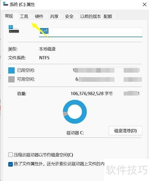 1、 右键点击目标磁盘,选择属性即可查看相关信息。