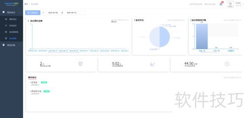 7、 用户使用一段时间后,可通过我的会议中的会议报表功能,查看该时段内所有会议的详细信息。通过分析数据,可了解主要使用的会议室类型及使用频率较高的房间,便于后续管理人员根据实际情况进行优化调整,提升会议室资源的利用效率与管理效能。
