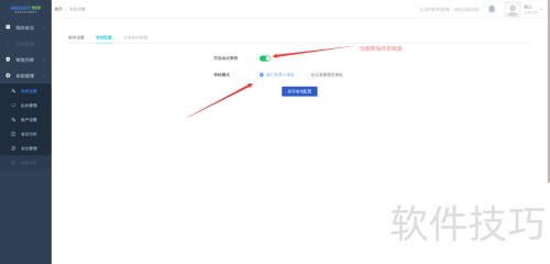 9、 部分企业因特殊需求需对会议进行审批管理,可启用思沃普智能会议系统的会议审核功能。操作时,管理员登录系统后,依次进入-,选择,将相关开关调整为开启状态即可完成设置,便于实现会议流程的规范化管控。