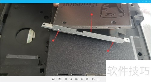 7、 安装新硬盘,对准孔位,重新装上支架和螺丝。