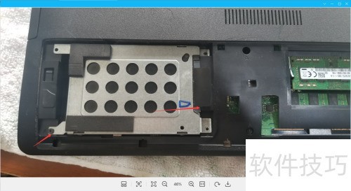 15、 拆下硬盘支架两侧螺丝,取出原有硬盘。