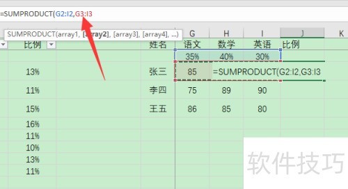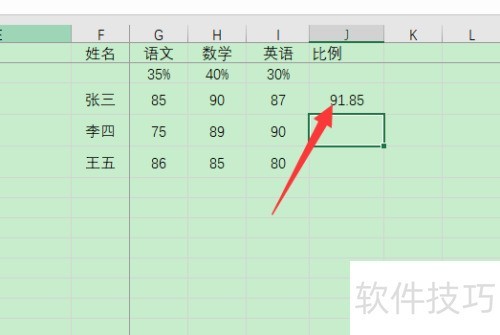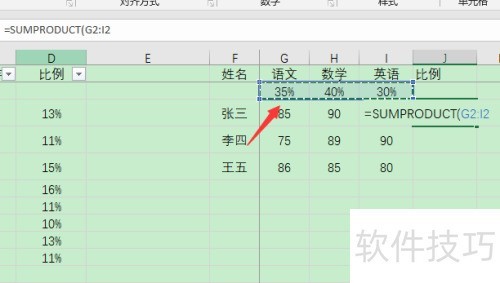 在Excel中计算成绩加权平均数,可用SUMPRODUCT函数除以权重总和。