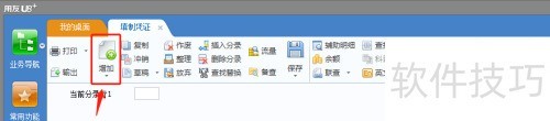 3、 在凭证录入界面,点击左上角的增加按钮,即可新增一张空白凭证。