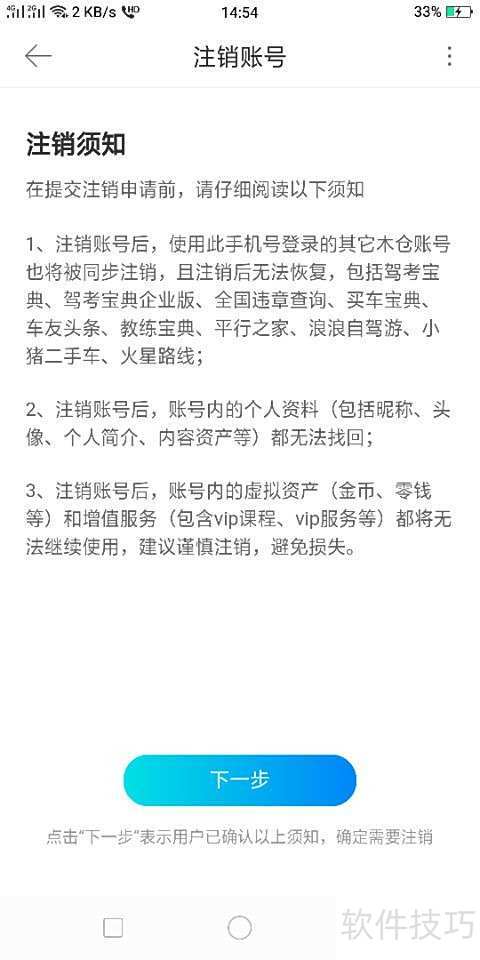 6、 按提示操作即可完成驾考宝典的注销,具体步骤见下图。