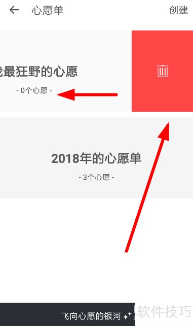 2、 在心愿单页面,只需按住想要删除的项目并向左滑动,随后点击出现的垃圾桶图标,即可轻松完成删除操作。