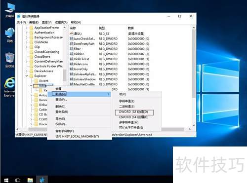 5、 右键点击,选择新建,创建一个32位DWORD值