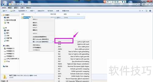 2、 右键点击文件夹名称,将鼠标移至列表中的插入UNICODE控制字符选项即可。
