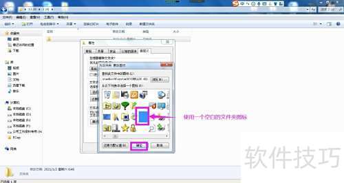 6、 在自定义选项卡中,点击文件夹图标下方的更改图标按钮,将弹出更换图标的对话框。