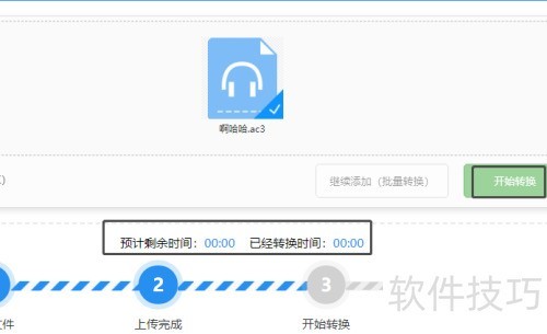 5、 设置完成后,点击开始转换按钮即可处理音频文件,转换所需时间将显示在文件下方。