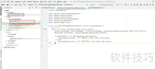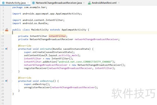 1、 创建一个名为NetworkChangeBroadcastReceiver的类,该类需继承自BroadcastReceiver,用于接收网络状态变化的广播消息。